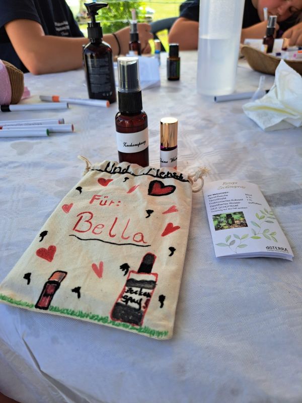 Bei Michele von NATURZEIT durfte die Jugend eine Mittel gegen Zecken und etwas gegen kleine Wunden herstellen: