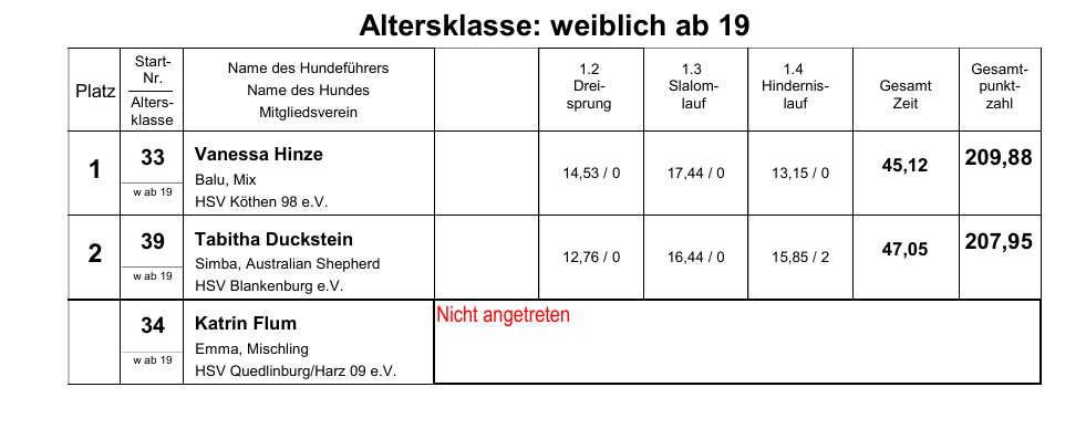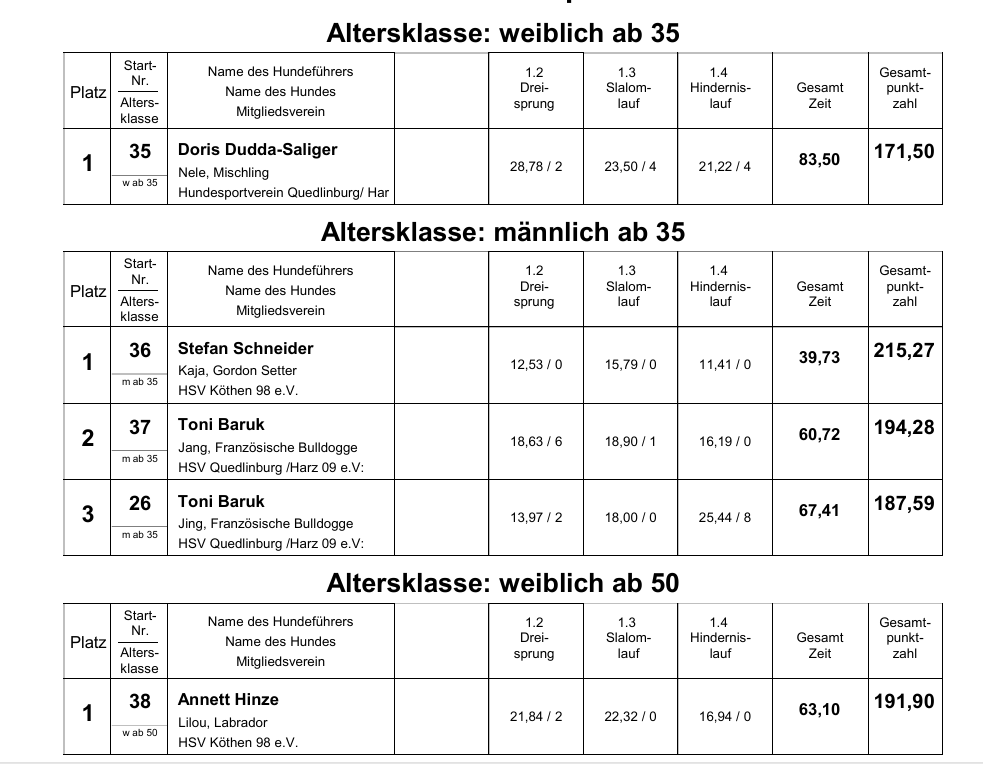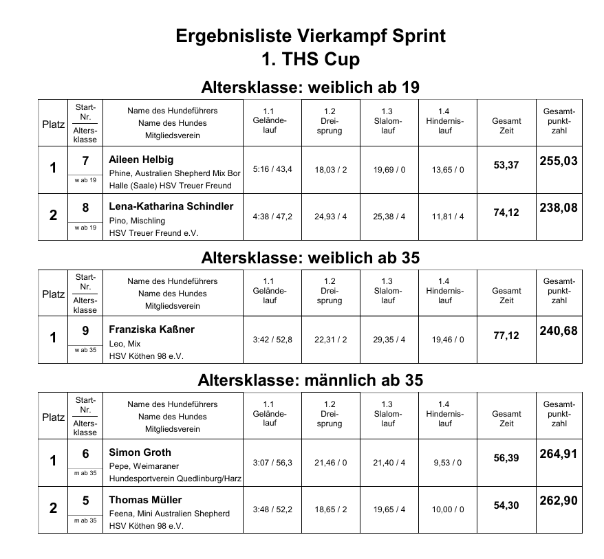 Hier gibts jetzt die Ergebnislisten für euch:
